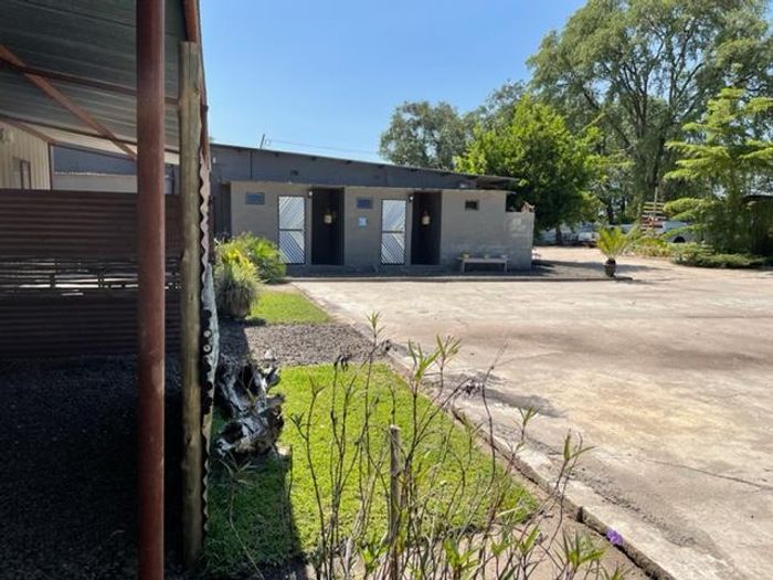 Operate from a secure, well-located industrial compound ideal for light manufacturing or logistics, featuring a double-volume workshop, air-conditioned offices, kitchenette, ablutions, electric fencing, and adjoining vacant stand available.