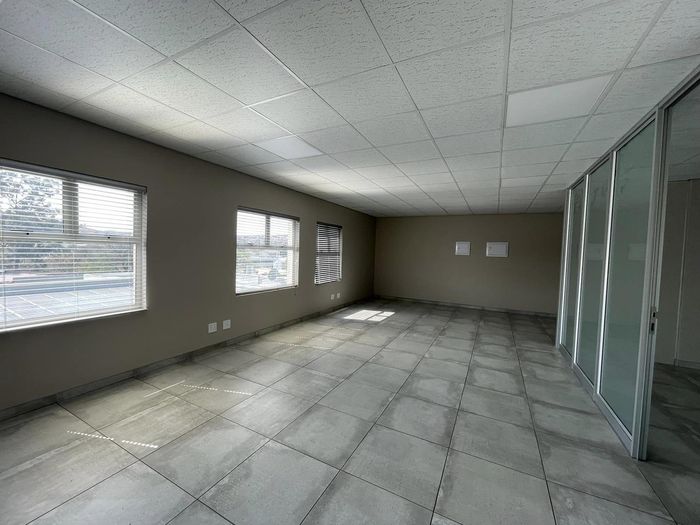Open plan office, Kitchen, Toilets, Alarm & Air-con. Electric fencing, 3 parking spaces, Customer parking,